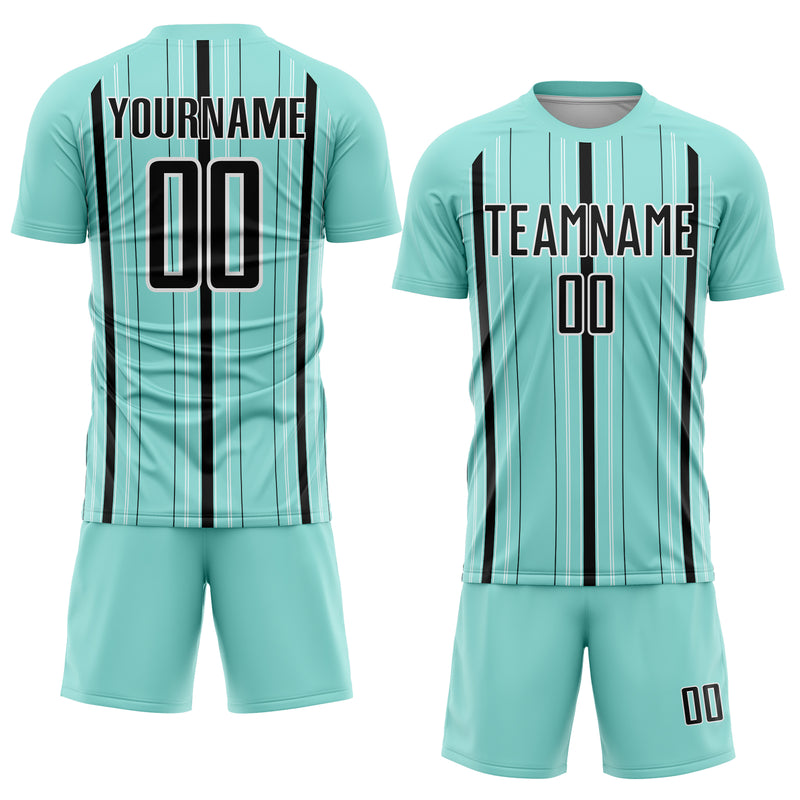 Custom Ice Blue Black-White Stripe Sublimation Soccer Uniform Jersey