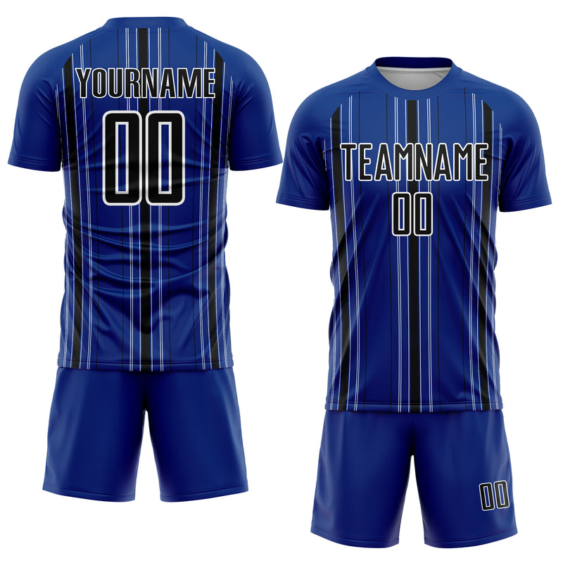 Custom Royal Black-White Stripe Sublimation Soccer Uniform Jersey