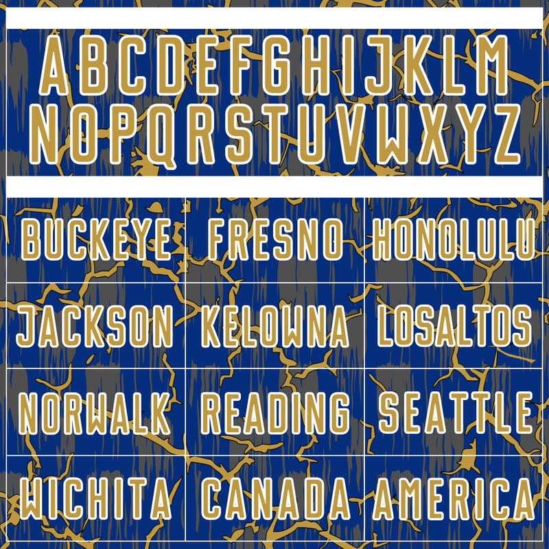 Custom Royal Old Gold-White Lightning Sublimation Soccer Uniform Jersey