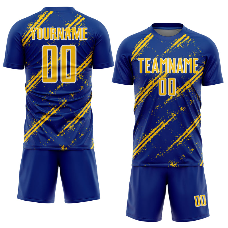Custom Royal Yellow-White Abstract Fragment Art Splash Sublimation Soccer Uniform Jersey