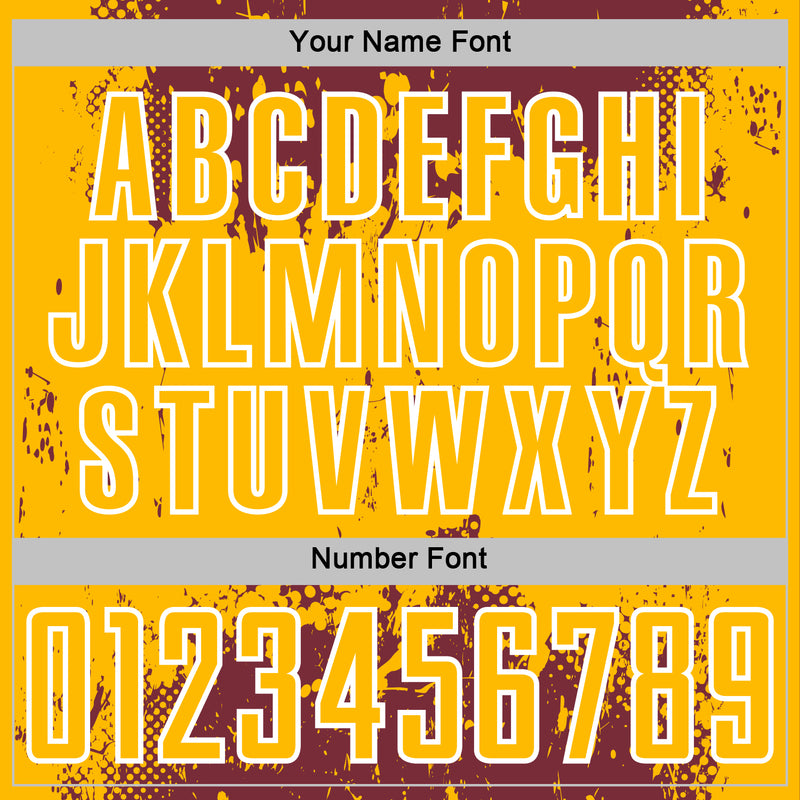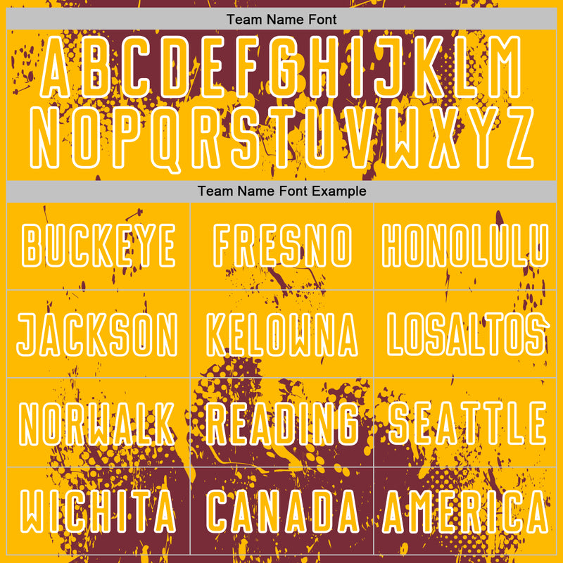 Custom Burgundy Gold-White Abstract Splatter Grunge Art Sports Sublimation Soccer Uniform Jersey