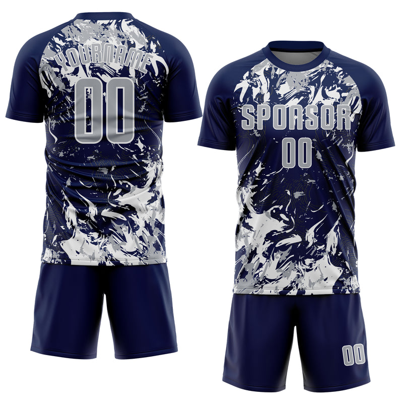 Custom Navy Gray-White Fluid Art Splash Sublimation Soccer Uniform Jersey