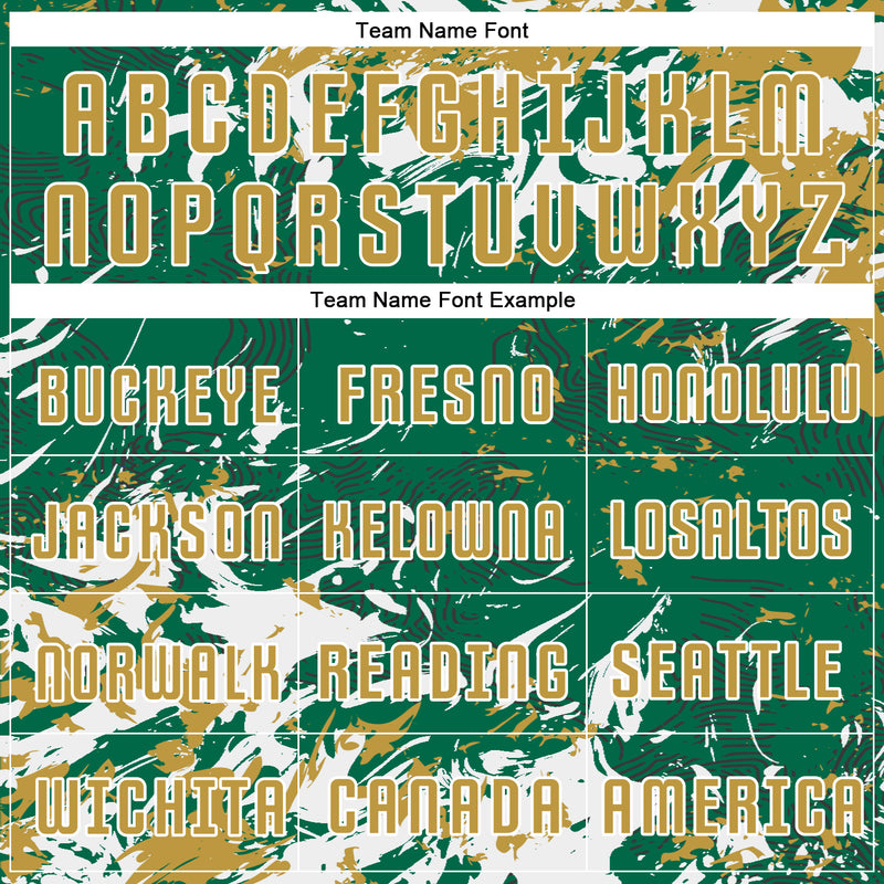 Custom Kelly Green Old Gold-White Fluid Art Splash Sublimation Soccer Uniform Jersey