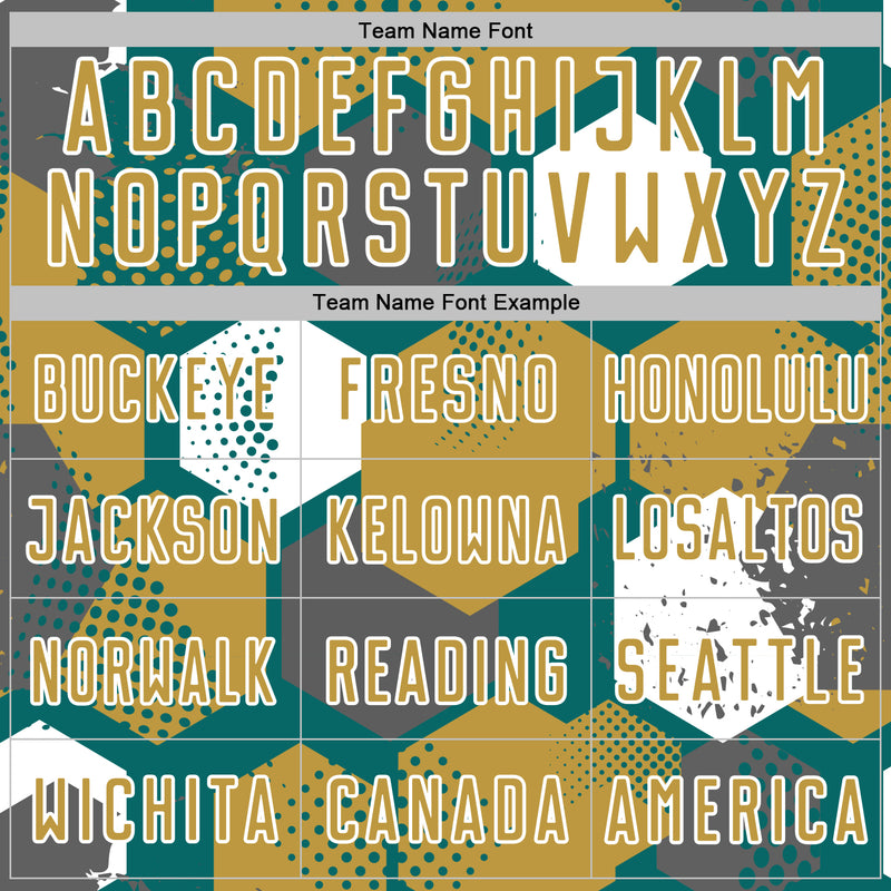Custom Teal Old Gold-White Geometric Shape Sublimation Soccer Uniform Jersey