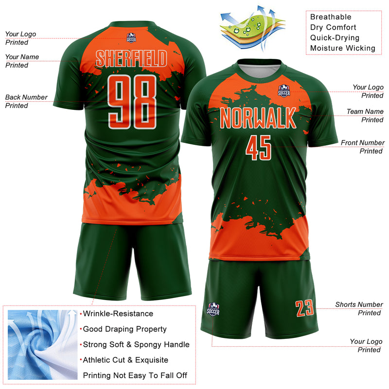 Custom Green Orange-White Abstract Fragment Art Sublimation Soccer Uniform Jersey