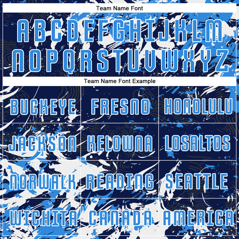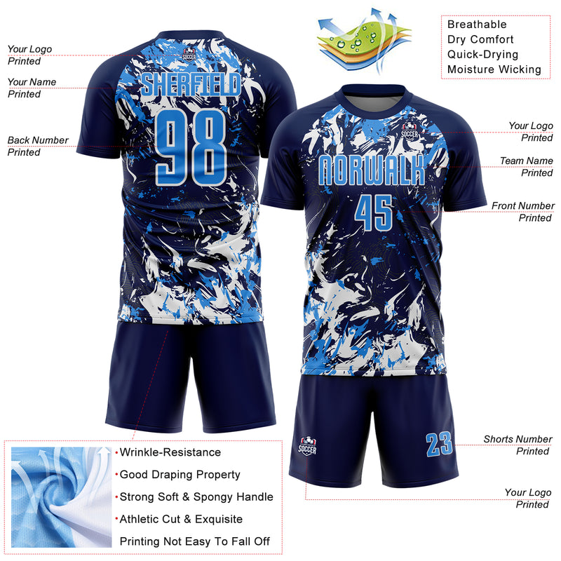 Custom Navy Powder Blue-White Fluid Art Splash Sublimation Soccer Uniform Jersey