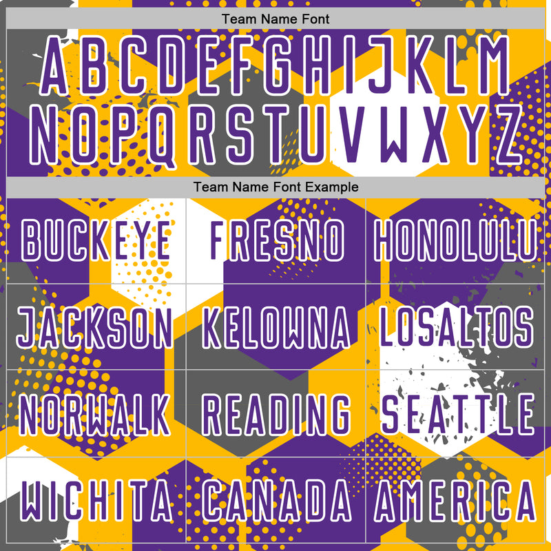 Custom Gold Purple-White Geometric Shape Sublimation Soccer Uniform Jersey
