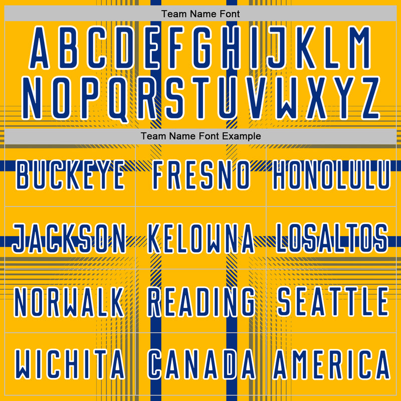 Custom Gold Royal-White Lines Sublimation Soccer Uniform Jersey