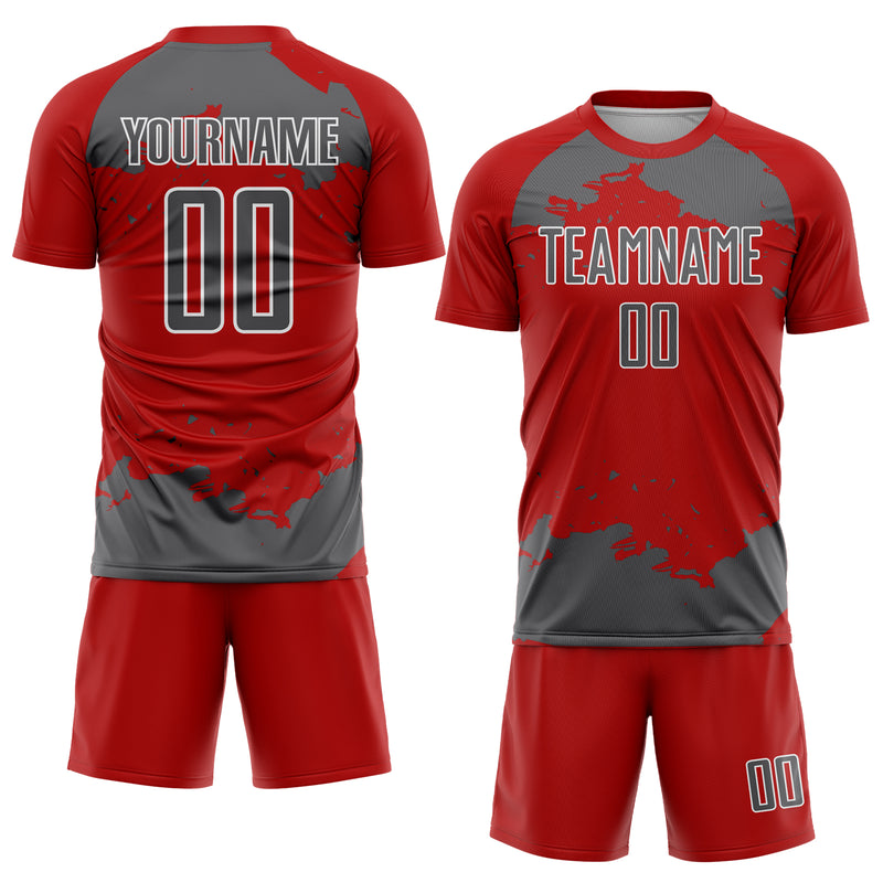 Custom Red Steel Gray-White Abstract Fragment Art Sublimation Soccer Uniform Jersey