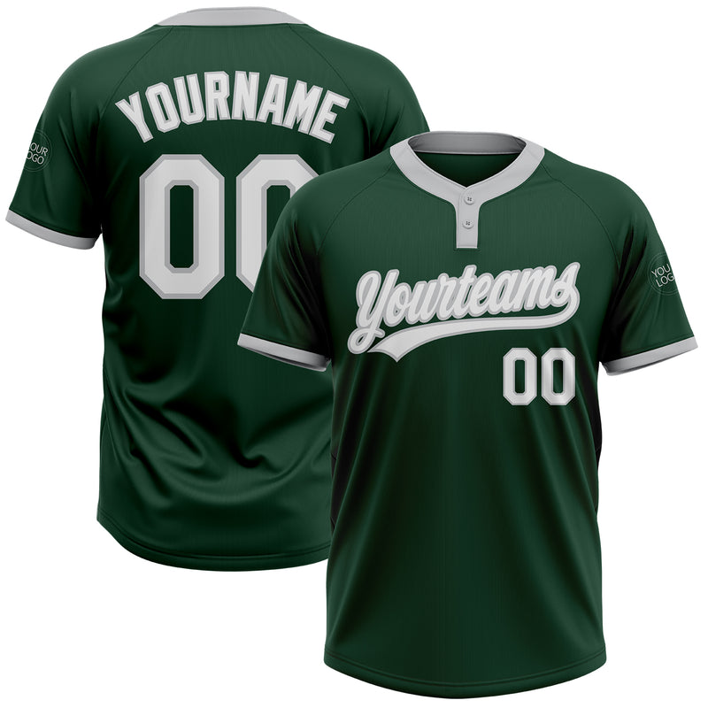 Custom Green White-Gray Two-Button Unisex Softball Jersey
