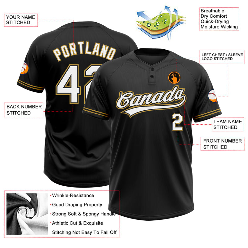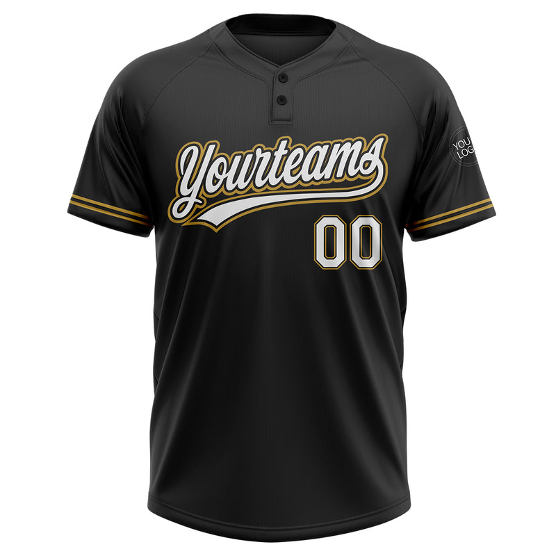 Custom Black White-Old Gold Two-Button Unisex Softball Jersey