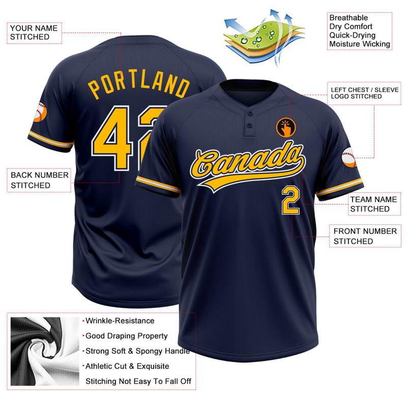Custom Navy Gold-White Two-Button Unisex Softball Jersey