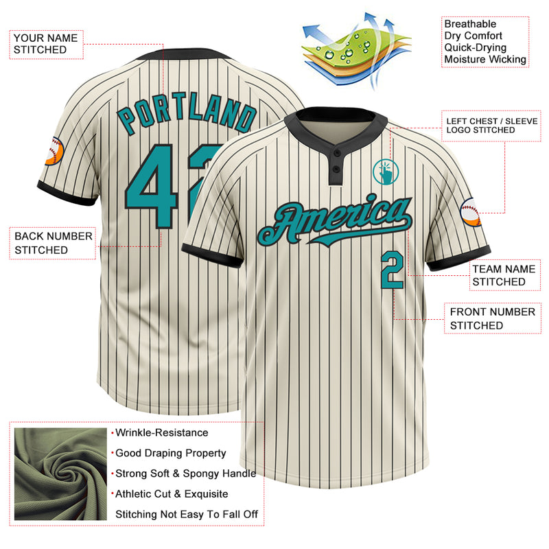 Custom Cream Black Pinstripe Teal Two-Button Unisex Softball Jersey