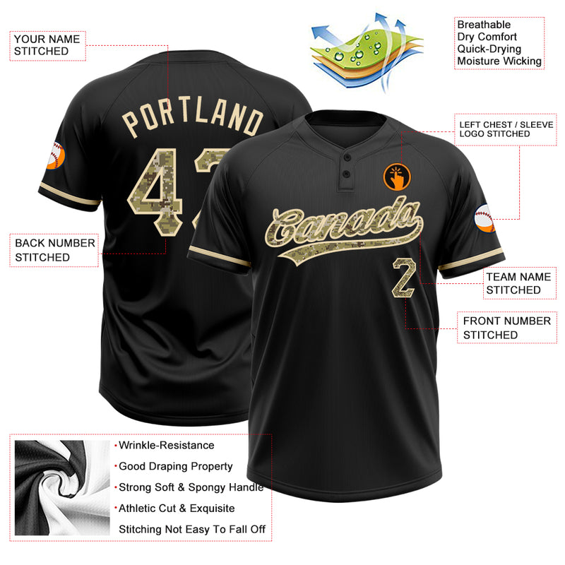 Custom Black Camo-City Cream Two-Button Unisex Softball Jersey