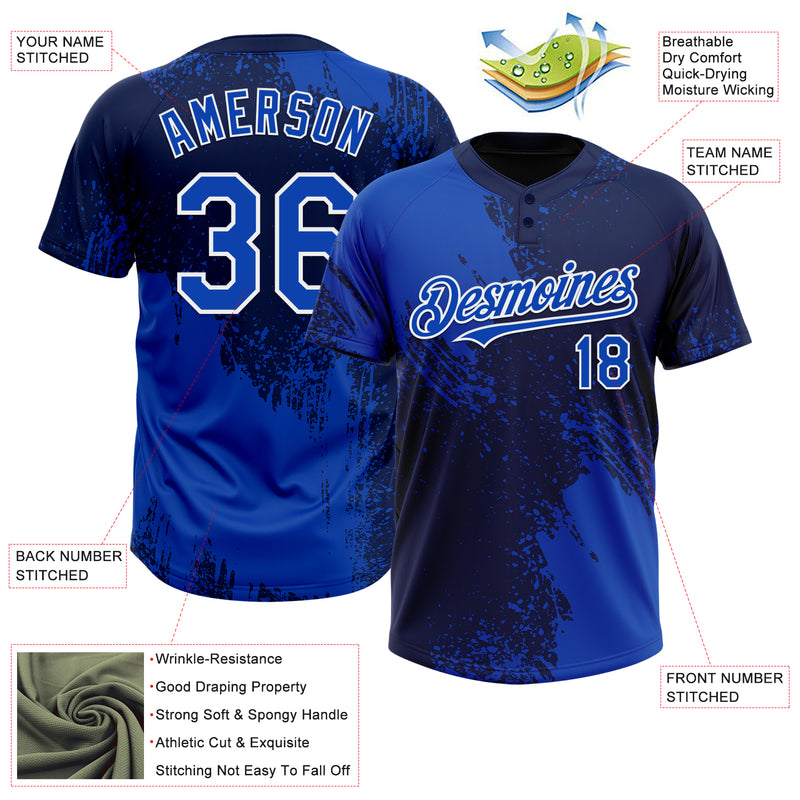 Custom Thunder Blue Navy-White 3D Pattern Abstract Brush Stroke Two-Button Unisex Softball Jersey