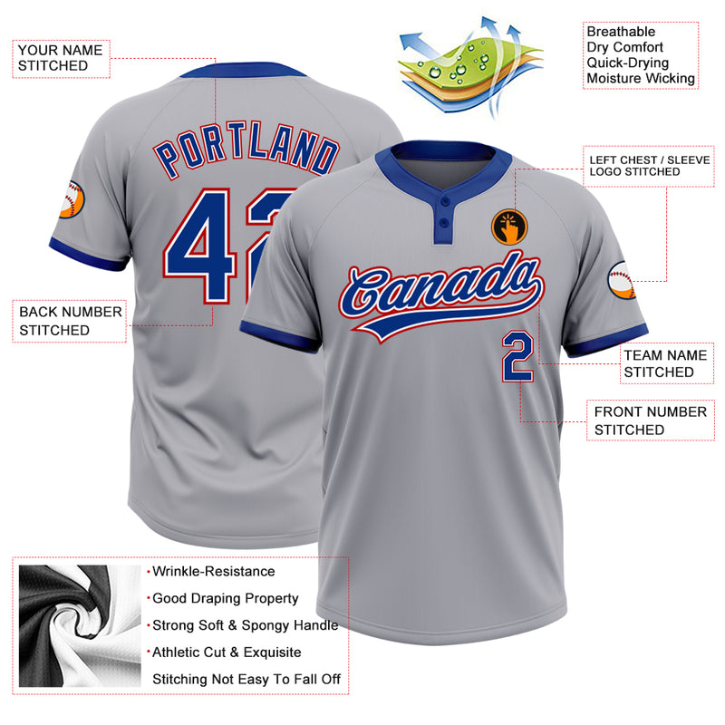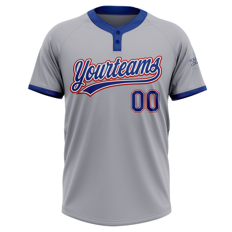 Custom Gray Royal-Red Two-Button Unisex Softball Jersey