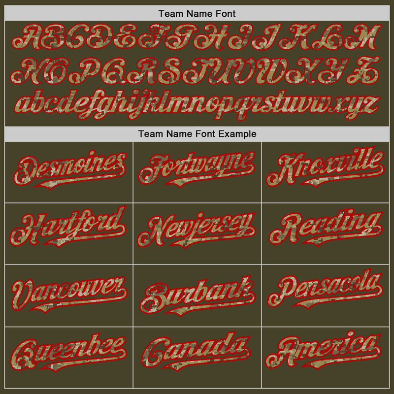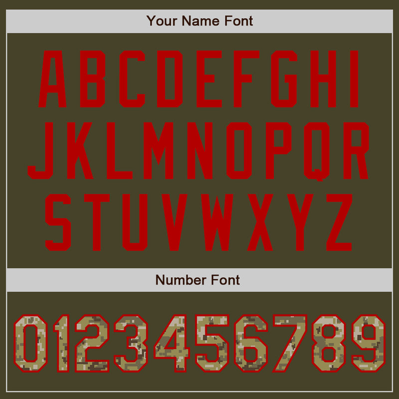 Custom Olive Red Pinstripe Camo Salute To Service Two-Button Unisex Softball Jersey