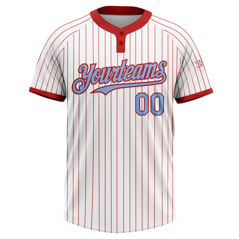 Custom White Red Pinstripe Light Blue Two-Button Unisex Softball Jersey