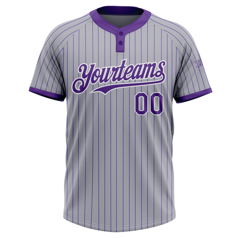 Custom Gray Purple Pinstripe White Two-Button Unisex Softball Jersey