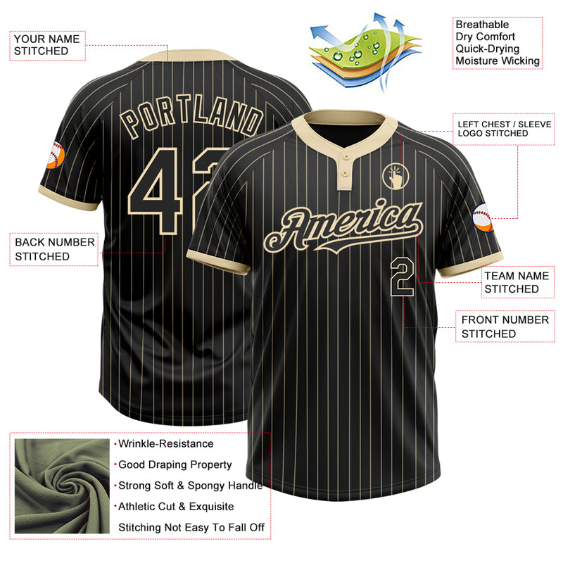 Custom Black Cream Pinstripe Cream Two-Button Unisex Softball Jersey