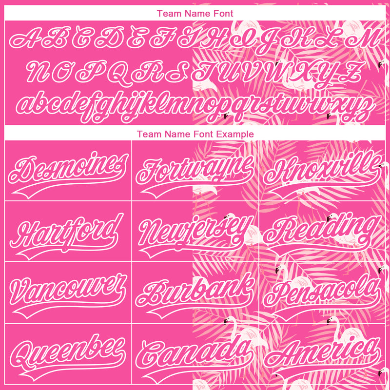 Custom Pink White 3D Pattern Tropical Palm Leaves And Famingo Two-Button Unisex Softball Jersey