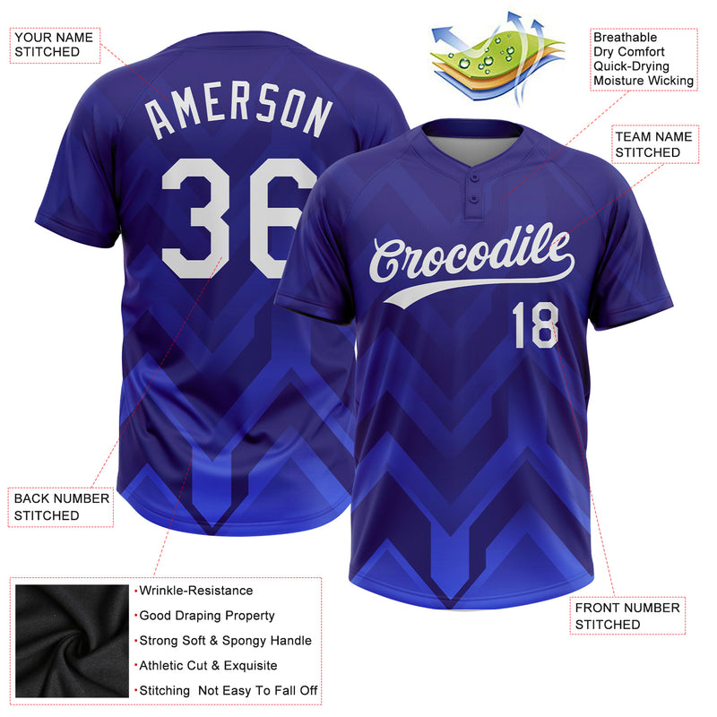 Custom Dark Purple White-Royal 3D Pattern Two-Button Unisex Softball Jersey