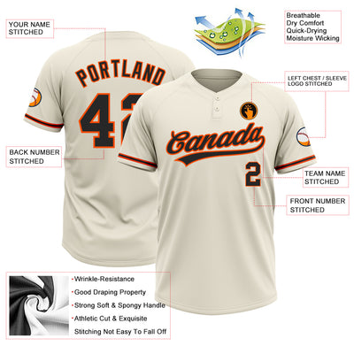 Custom Cream Black-Orange Two-Button Unisex Softball Jersey
