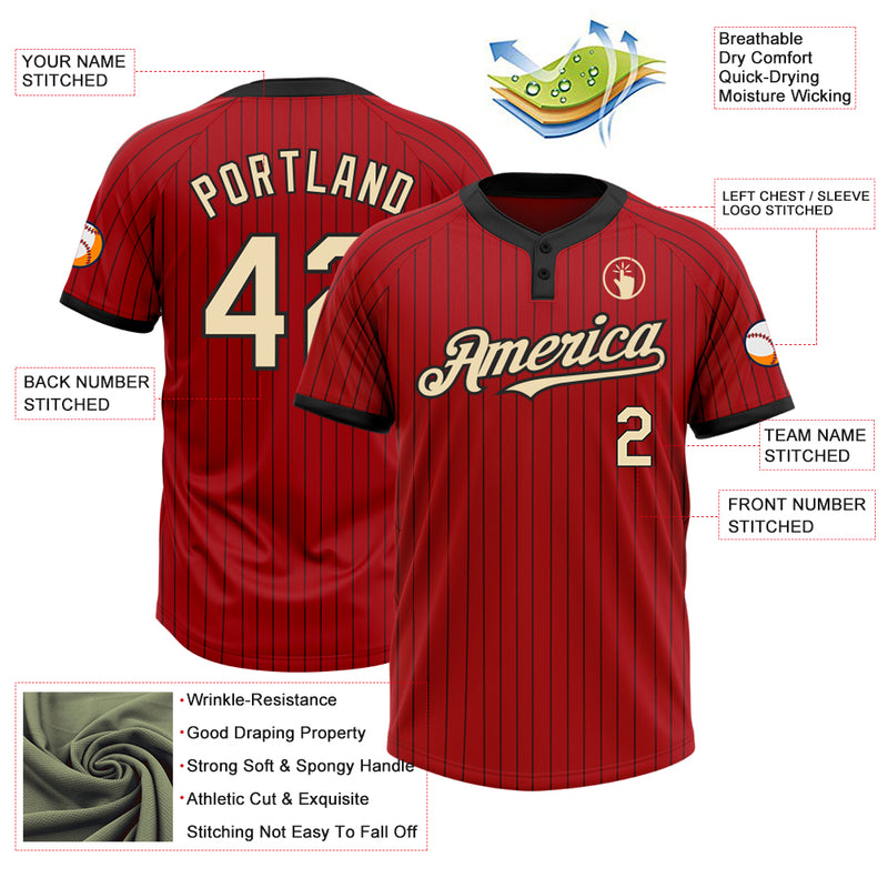 Custom Red Black Pinstripe Cream Two-Button Unisex Softball Jersey