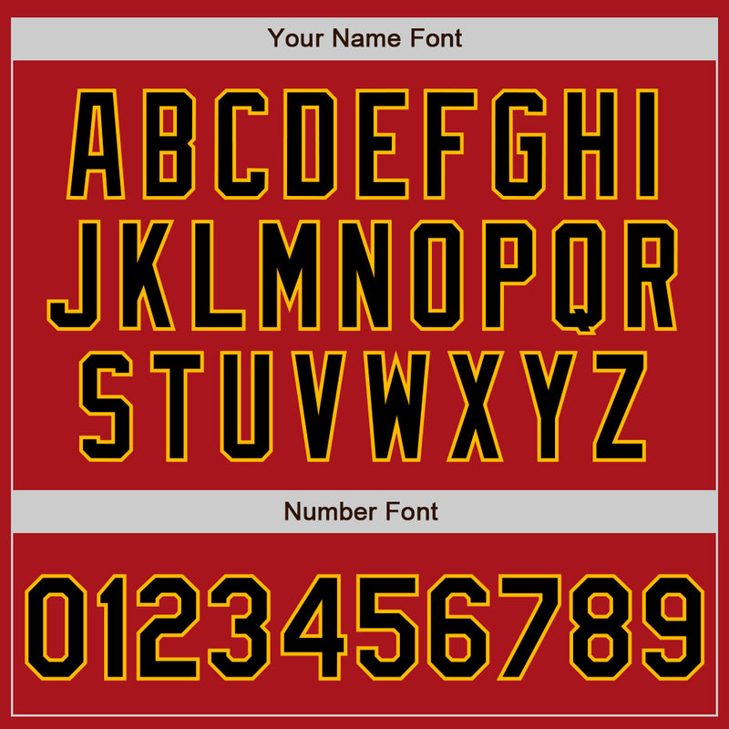 Custom Red Gold Pinstripe Black Two-Button Unisex Softball Jersey