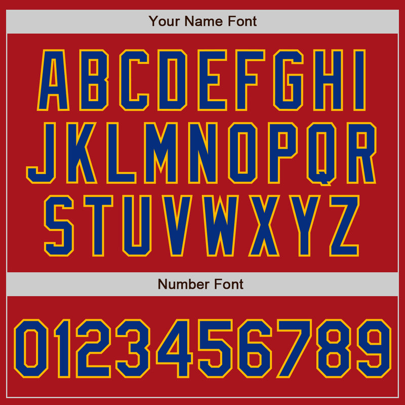 Custom Red Gold Pinstripe Royal Two-Button Unisex Softball Jersey