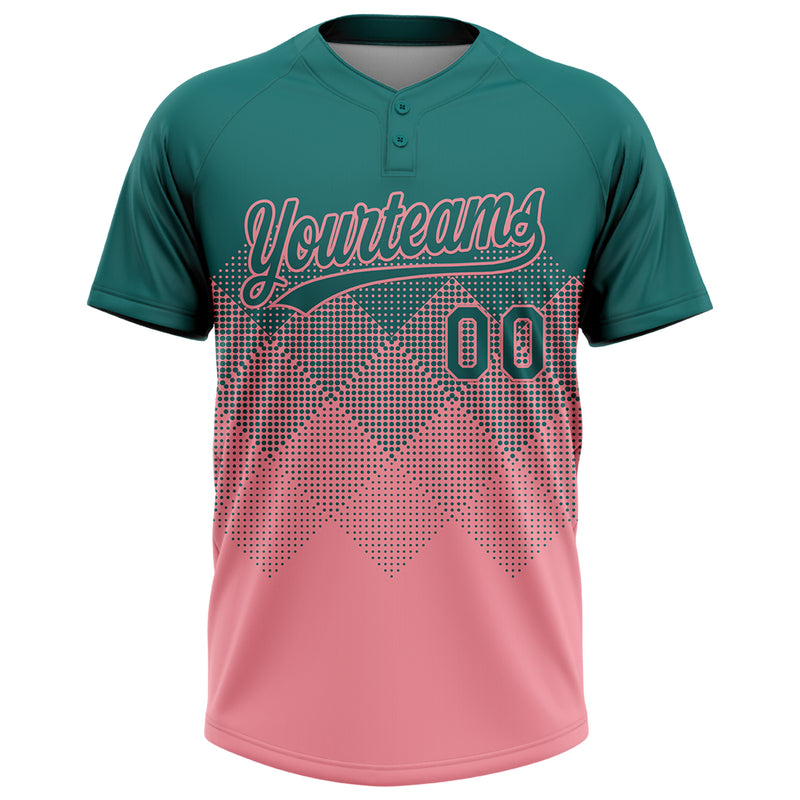 Custom Teal Medium Pink 3D Gradient Square Shape Two-Button Unisex Softball Jersey