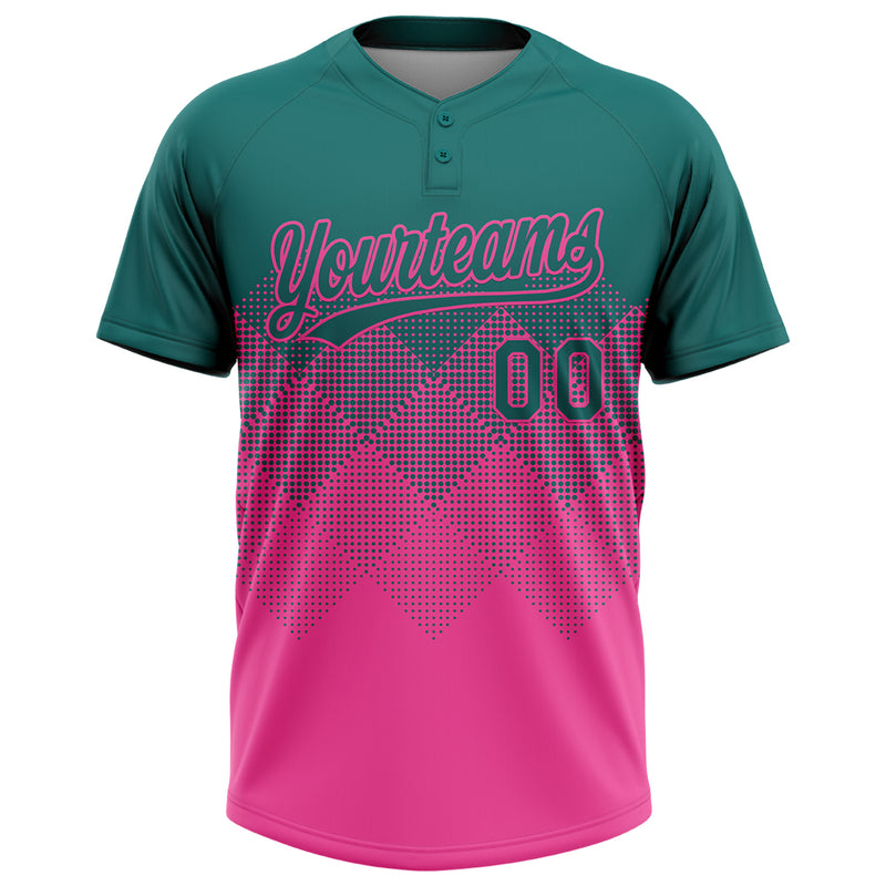 Custom Teal Pink 3D Gradient Square Shape Two-Button Unisex Softball Jersey