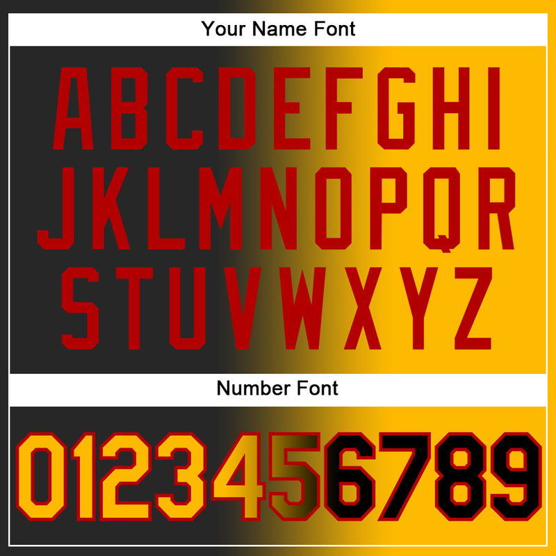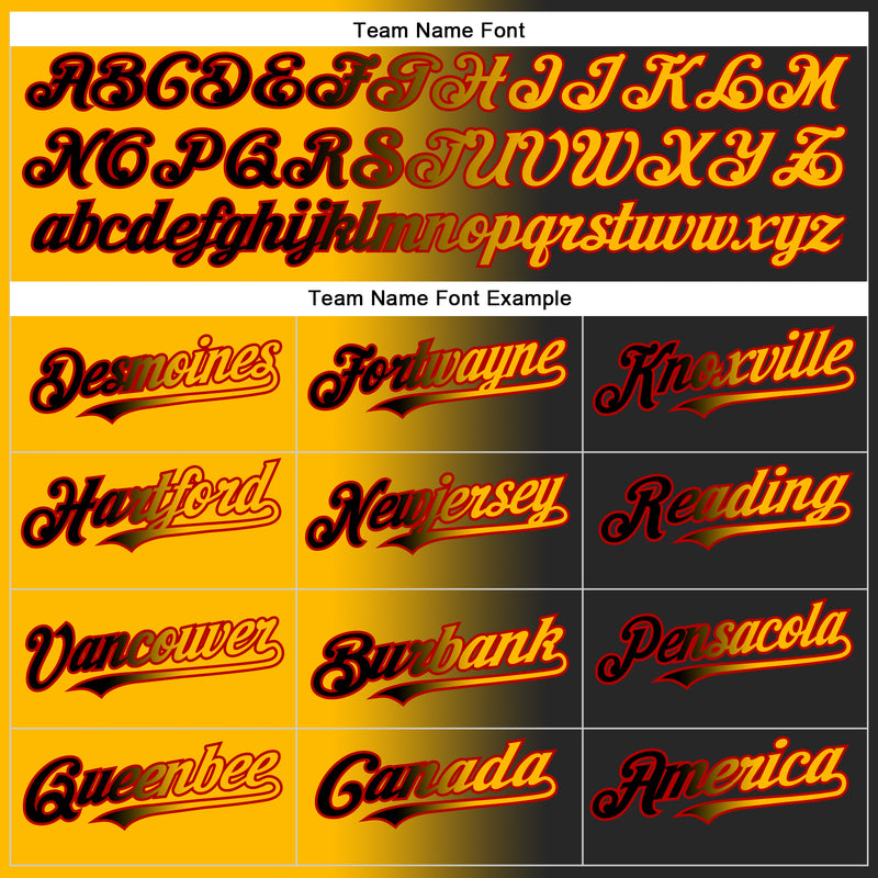 Custom Black Gold-Red Gradient Fashion Two-Button Unisex Softball Jersey