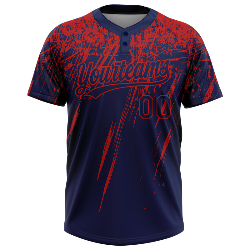 Custom Navy Red 3D Pattern Abstract Sharp Shape Two-Button Unisex Softball Jersey