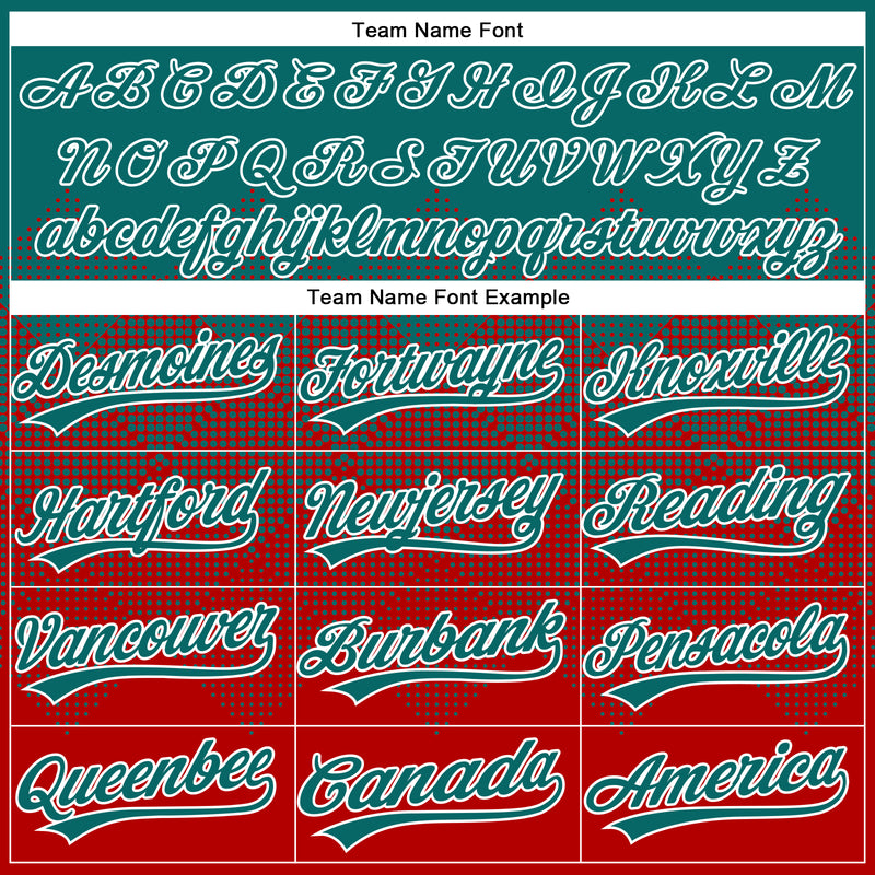 Custom Teal Red-White 3D Gradient Square Shape Two-Button Unisex Softball Jersey