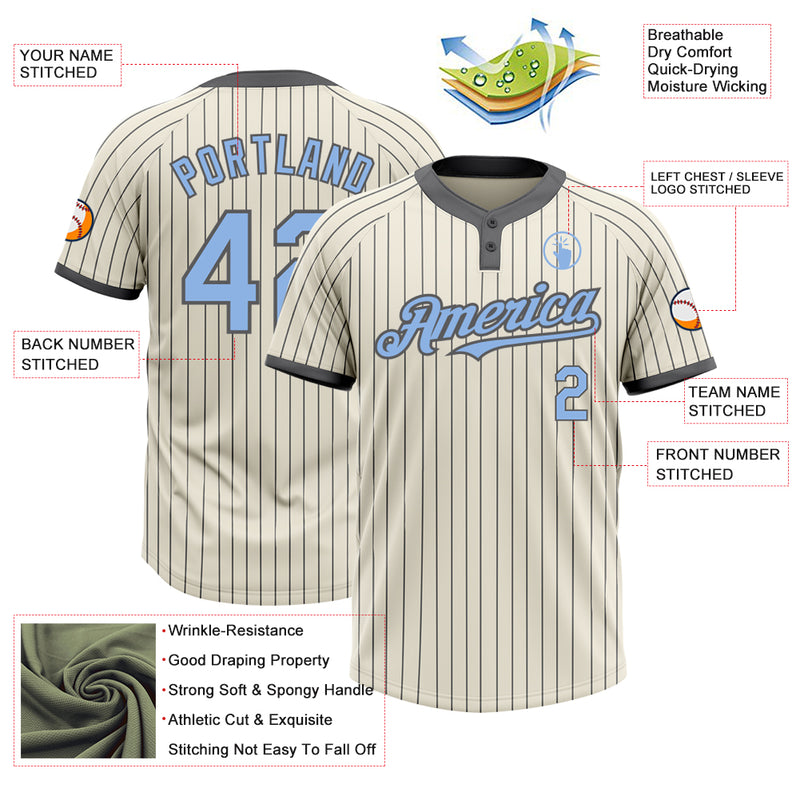 Custom Cream Steel Gray Pinstripe Light Blue Two-Button Unisex Softball Jersey