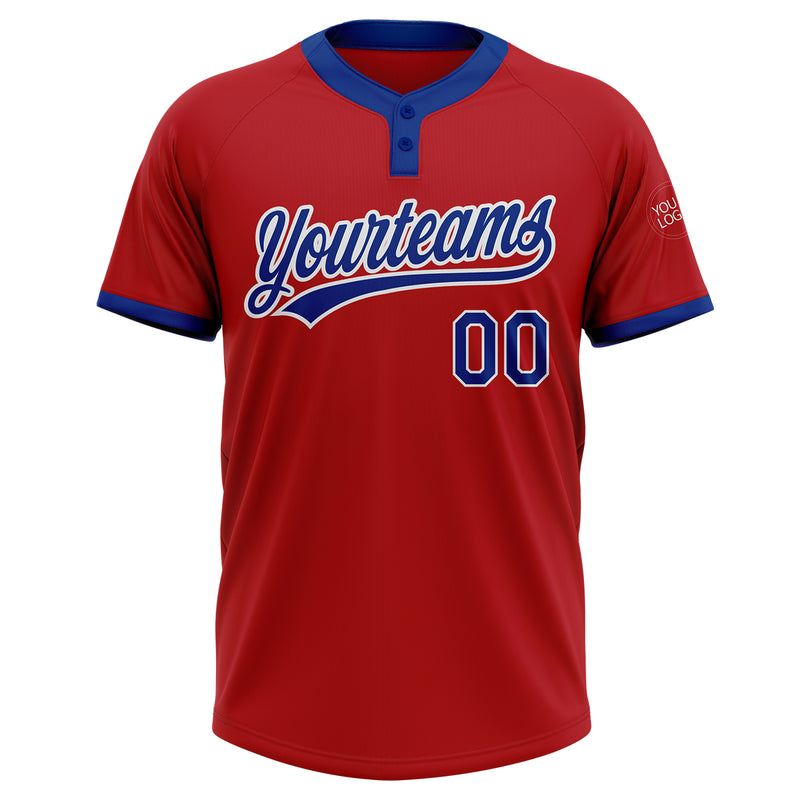 Custom Red Royal-White Two-Button Unisex Softball Jersey
