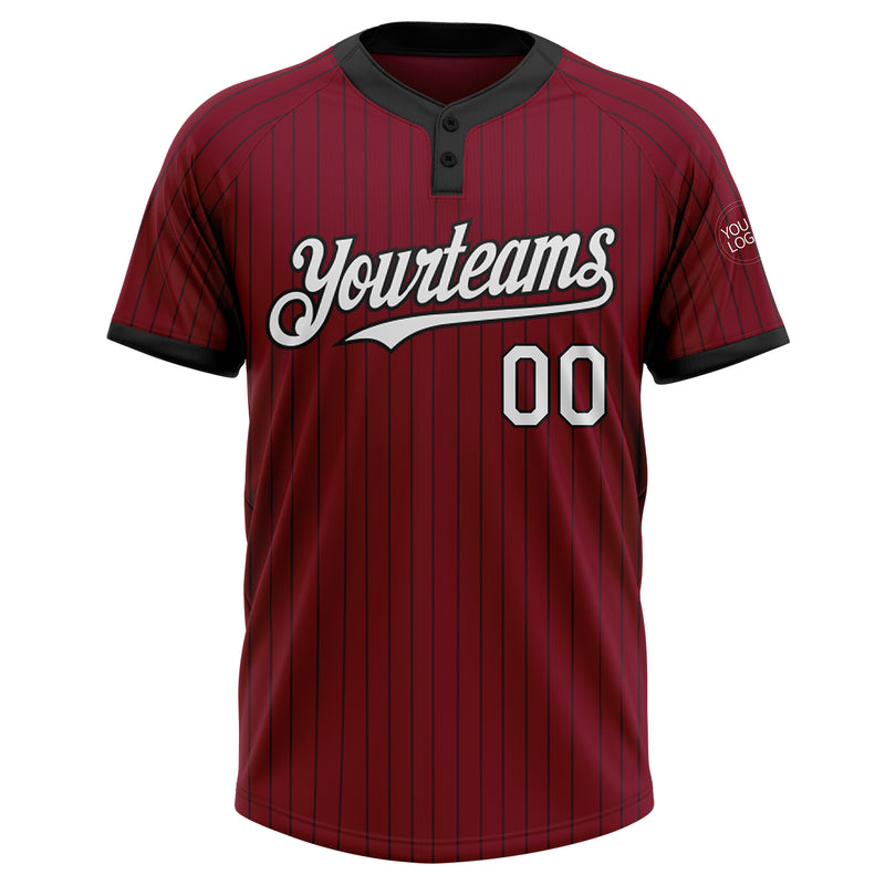 Custom Crimson Black Pinstripe White Two-Button Unisex Softball Jersey