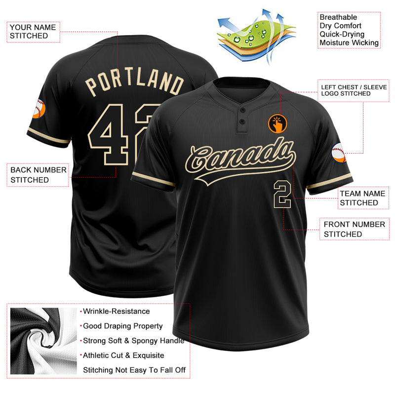 Custom Black Black-City Cream Two-Button Unisex Softball Jersey