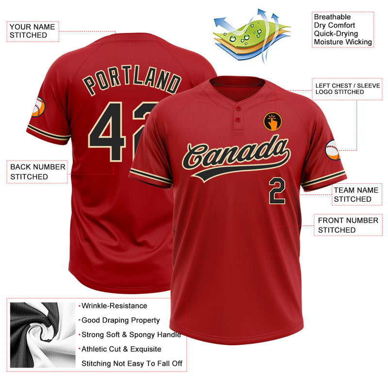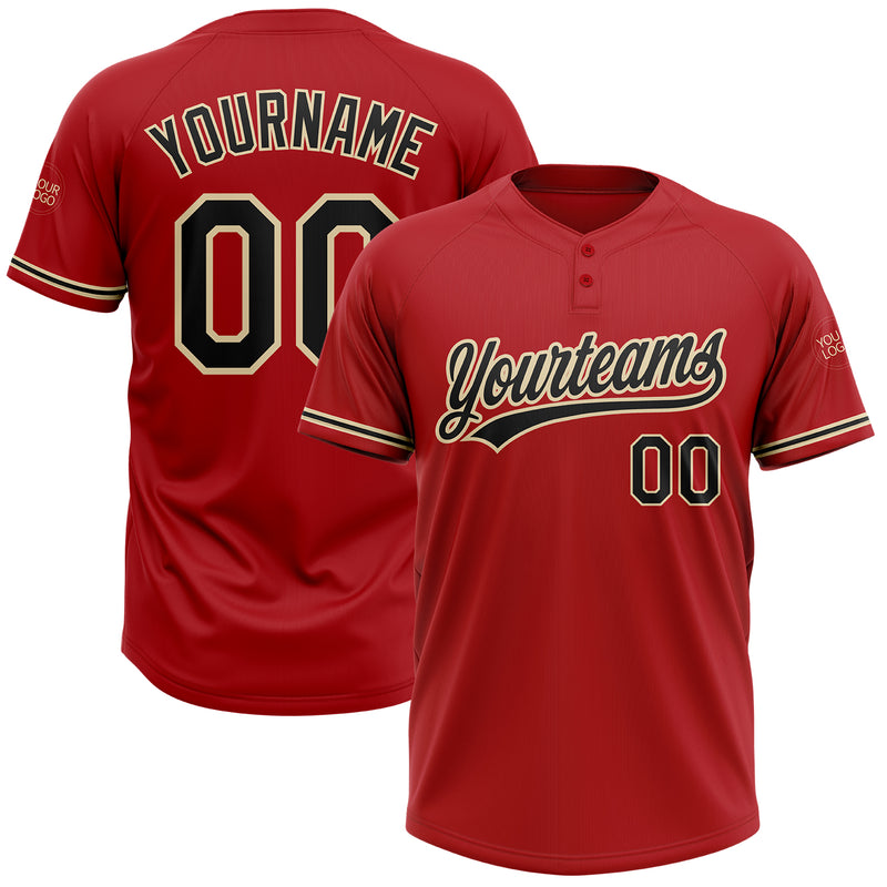 Custom Red Black-City Cream Two-Button Unisex Softball Jersey