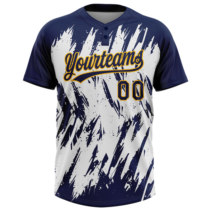 Custom Navy Gold-White 3D Pattern Abstract Sharp Shape Two-Button Unisex Softball Jersey