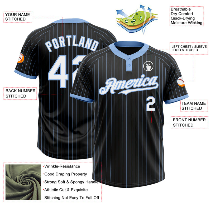 Custom Black Light Blue Pinstripe White Two-Button Unisex Softball Jersey