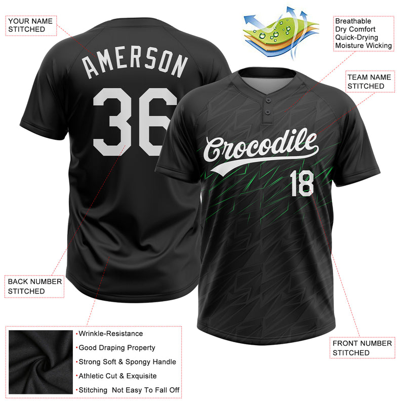Custom Black White-Neon Green 3D Pattern Two-Button Unisex Softball Jersey
