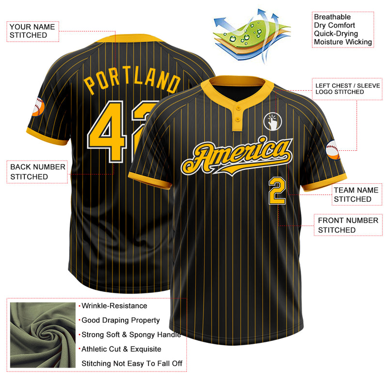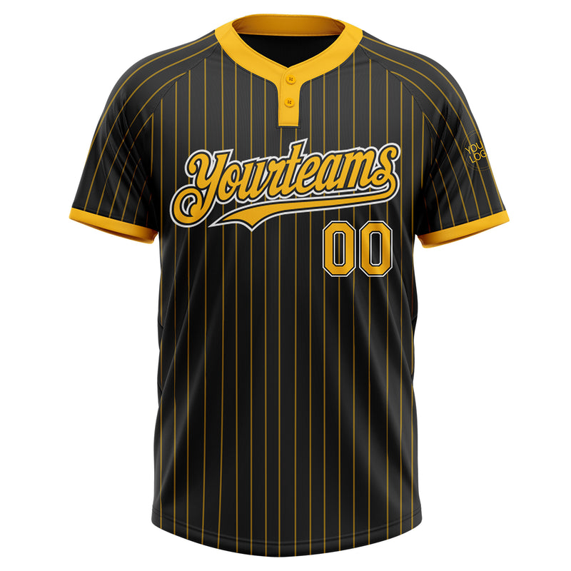 Custom Black Gold Pinstripe White Two-Button Unisex Softball Jersey