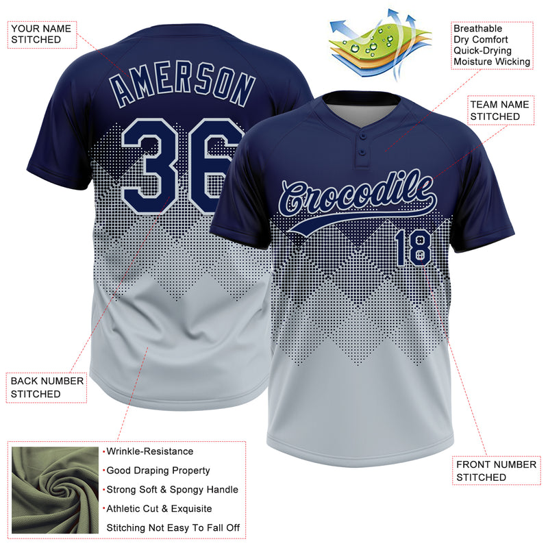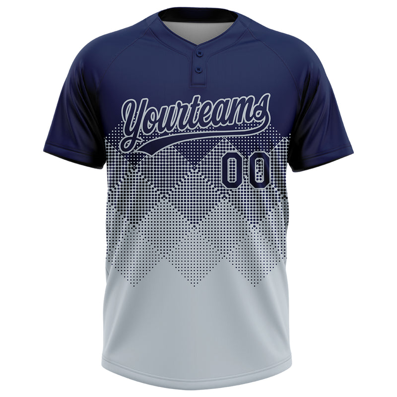 Custom Navy Silver 3D Gradient Square Shape Two-Button Unisex Softball Jersey