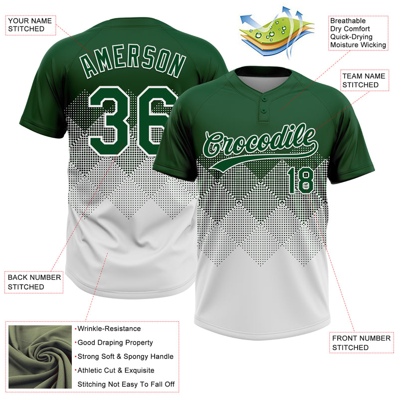 Custom Green White 3D Gradient Square Shape Two-Button Unisex Softball Jersey
