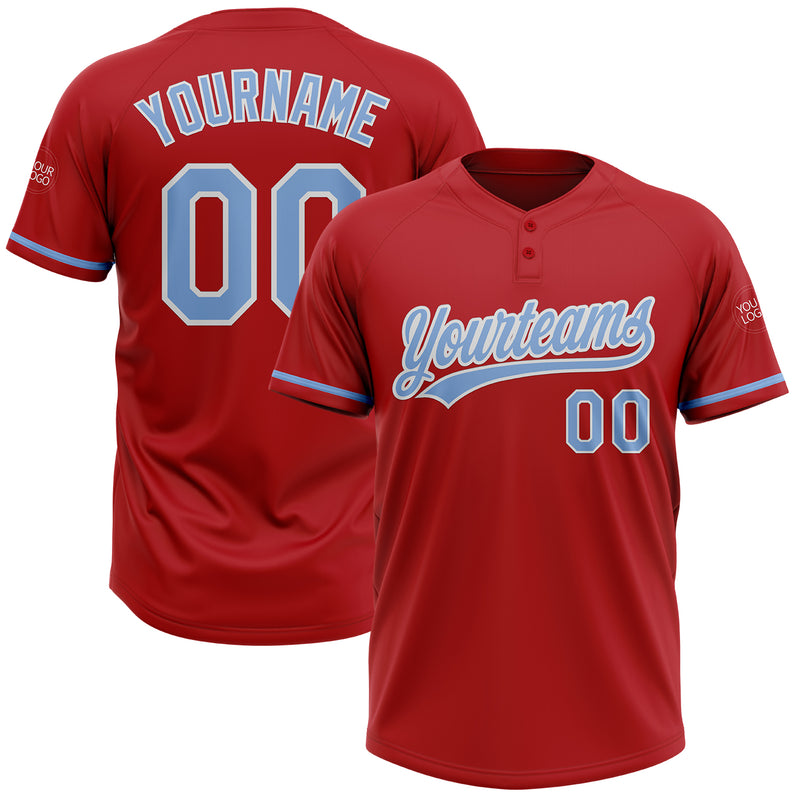 Custom Red Light Blue-White Two-Button Unisex Softball Jersey
