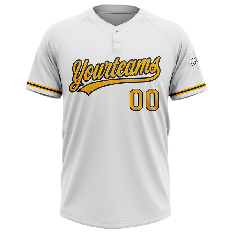 Custom White Gold-Black Two-Button Unisex Softball Jersey