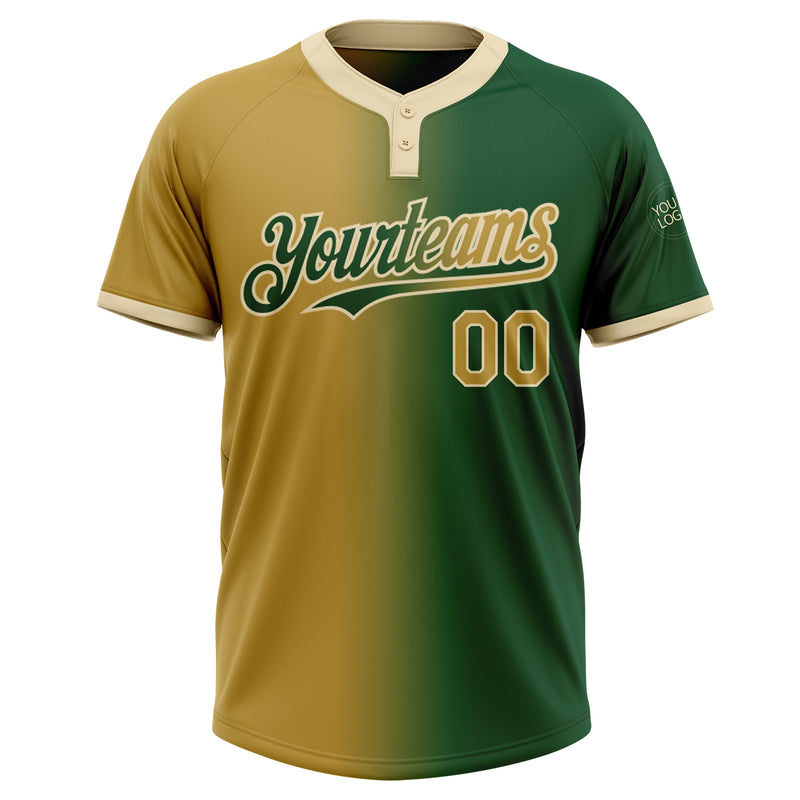 Custom Green Old Gold-Cream Gradient Fashion Two-Button Unisex Softball Jersey