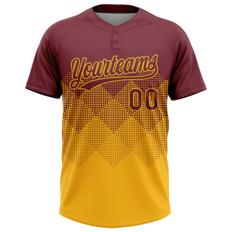 Custom Burgundy Gold 3D Gradient Square Shape Two-Button Unisex Softball Jersey